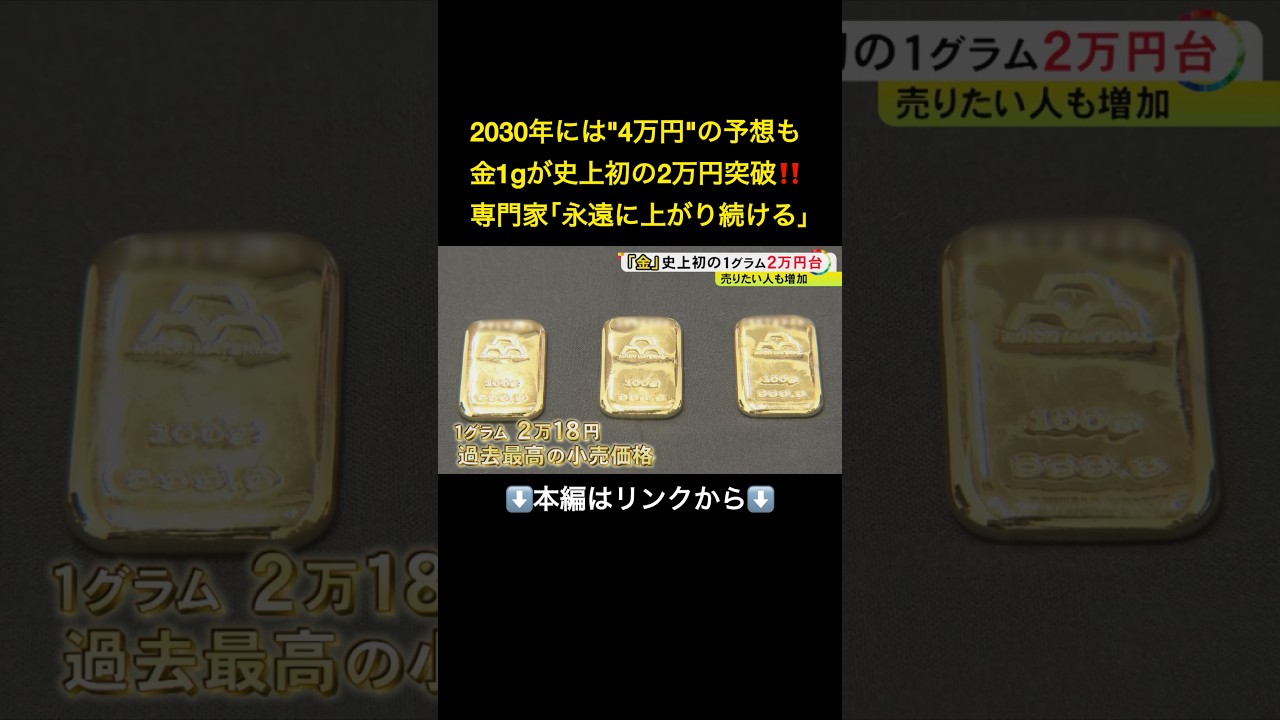 ⬆️本編はリンクから⬆️「永遠に上がり続ける」と予想する専門家も…金の価格が史上初の2万円突破 買取店には査定に訪れる人が増加中#shorts ニュース X Facebook Hatena Bookmark Pocket LINE Copy 2026.03.12 金の価格が、史上初の2万円の大台を突破しました。名古屋の買い取り店には、眠っていた指輪などに来る人が続々と訪れていて、査定額に驚きの声があがっていました。今後の価格について専門家は、「永遠に上がり続けるしかない」と話します。 2025年9月30日放送 #ニュースONE