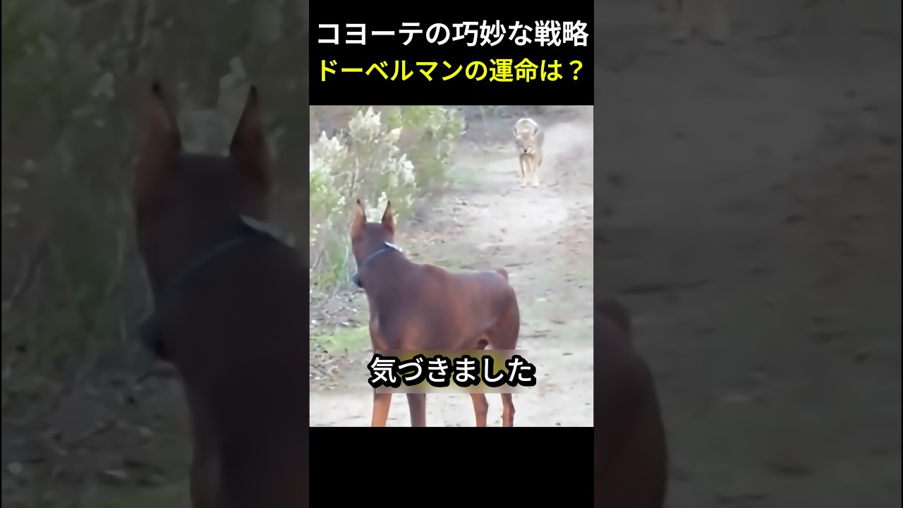 すると、子用手たちの戦略が変わります。1匹のメスが優しい目で近づき、まるで誘惑するかのように背を向けて歩き始めました。ドーベルマンは一瞬、ついて行こうとしましたが、再び主人の声が響きました。この声こそが、彼を危険から救う合図でした。ドーベルマンはすぐに罠に気づき、身を引きます。この時、横から別の子用手が飛び出してきました。